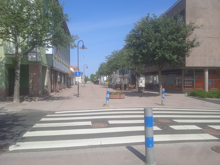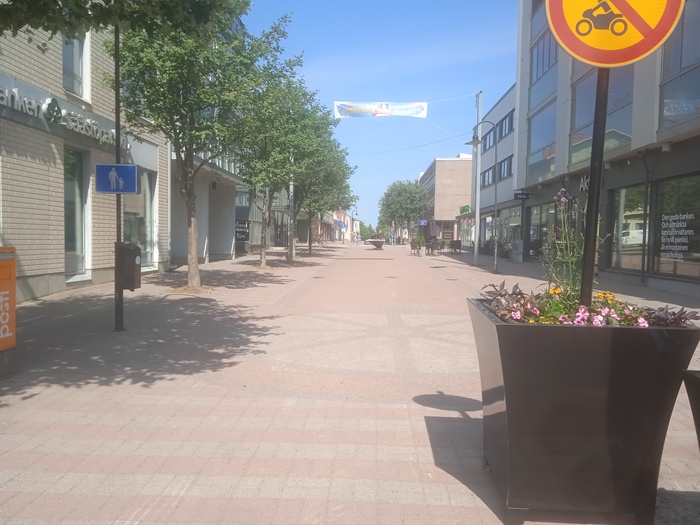 Торговая улица. Я жил в доме справа. Тут каждую среду и субботу ставят торговые палатки с барахлом всяким, продают овощи и ягоды, колбасы собственного производства и всякую рыбу. Бесило, что шумели в субботу с 7 утра, собирая свои палатки. Съехал оттуда ближе к лесу. Тут тихо, олени, грибы и черника.