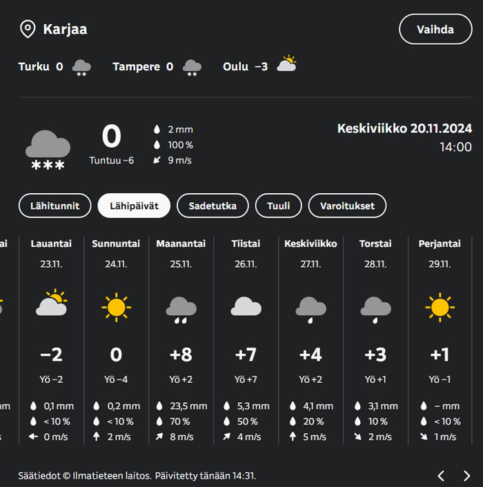 Karjaa/Karis/Карьяа - городок с населением около 8000 человек. Одна из станций железнодорожного пути Хельсинки - Турку. От Хельсинки 80км, до Турку 110км.