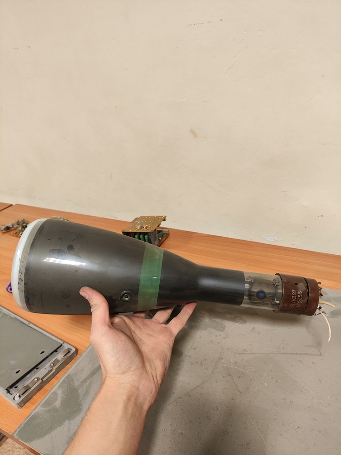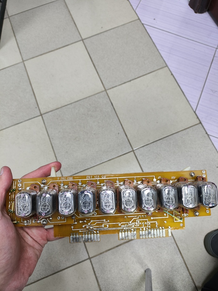 После того как всё разобрали, я попросил разрешения забрать себе кое-какие элементы, так, например, я утащил газоразрядный индикатор. В будущем, может быть, попробую сделать часы с помощью них или отдам кому-то.