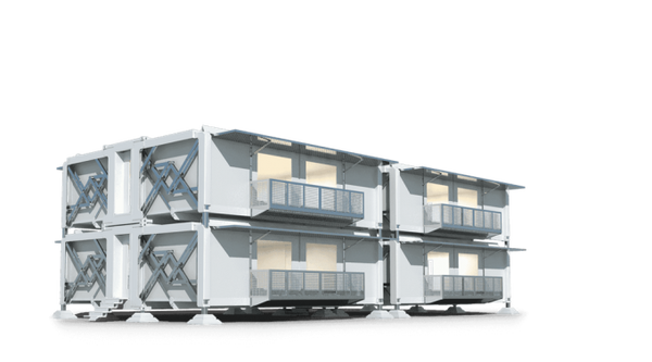 В комплект поставки входит блок. Его привезут в любую местность на обычном грузовике. На месте строительный объект разворачивается и можно праздновать новоселье. Не придётся прокладывать даже внутренние коммуникации, их нужно лишь подключить к общим сетям. Самая простая версия предусматривает 64 м² жилого пространства, в сложенном блок занимает 20 м³.