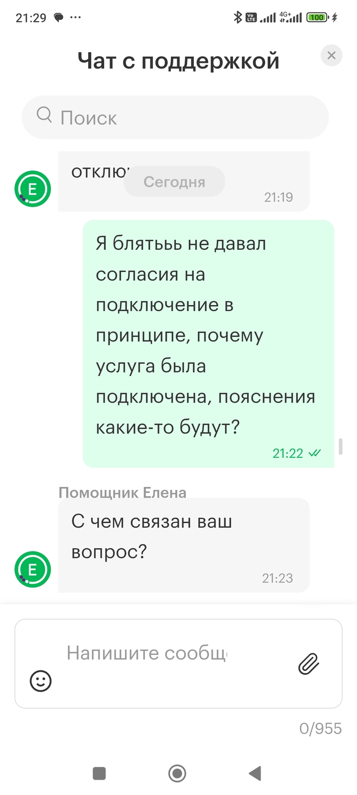 Пользуюсь мегафоном только ради общения с пожилыми родственниками, которые живут в деревне, где просто нет других операторов, но эта ситуация уже начинает раздражать. При этом их тупой бот постоянно пытается убедить, что сами по себе подписки не подключаются, а пробиться через него до реального человека в чате или дозвониться по телефону просто невозможно.