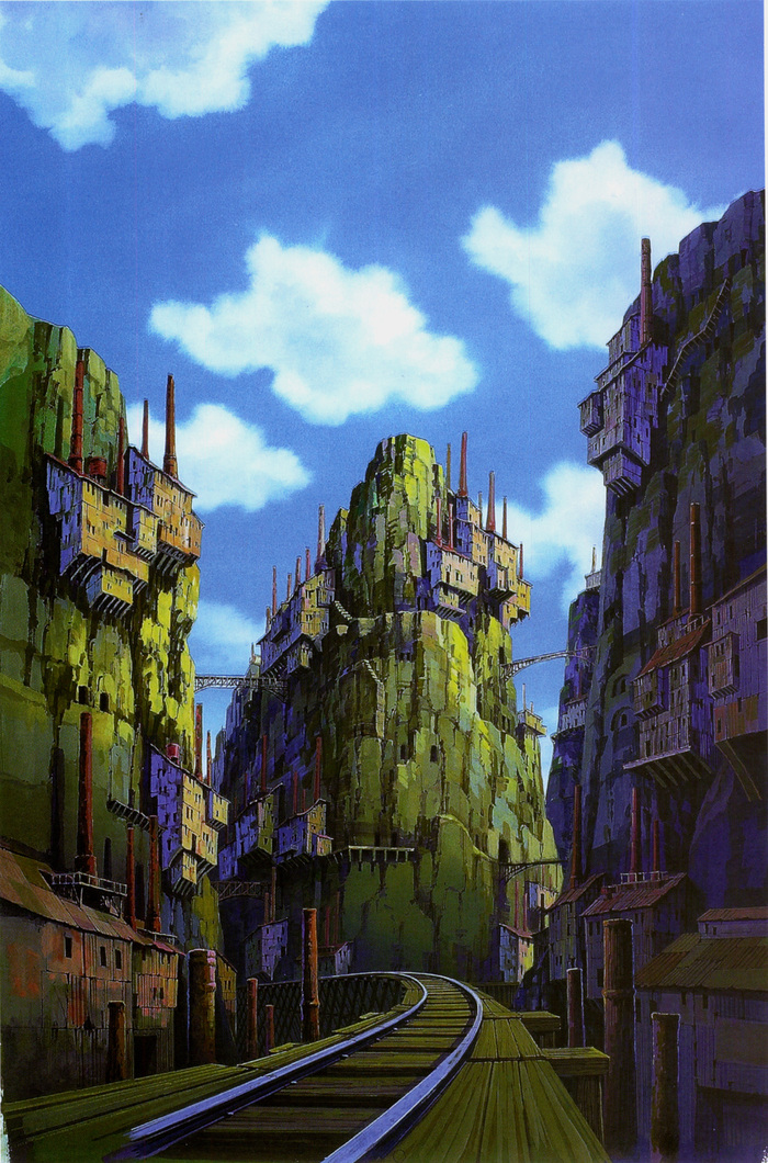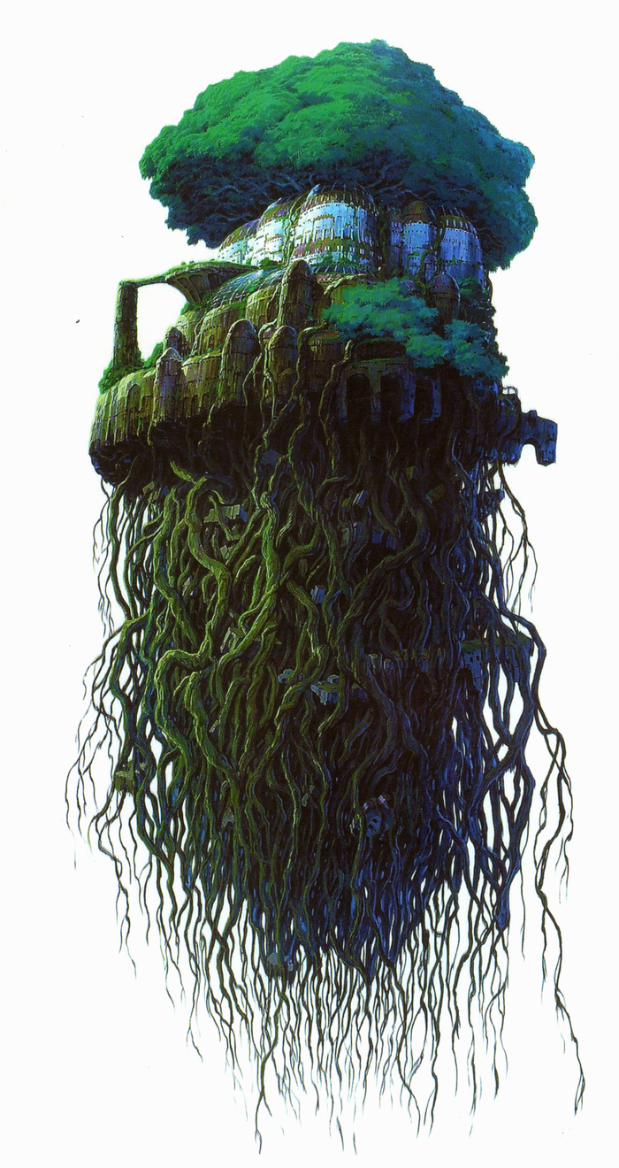 Дебютный проект студии Ghibli повествует о девочке по имени Шита и подмастерье инженера Пазу, которые отправляются на поиски легендарной Лапуты. Шита обладает таинственным хрустальным кулоном, который способен указать путь к затерянному городу, что делает ее мишенью не только небесных пиратов, но и правительственных военных, стремящихся заполучить власть на Лапуте. События картины происходят в альтернативной реальности, а саму идею небесного замка Миядзаки позаимствовал у английского классика Джонатана Свифта, который описал похожий летающий остров в своих «Путешествиях Гулливера».