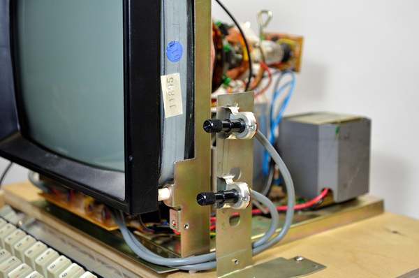 Регуляторы яркости и контраста я выпаял из платы и перенёс на переднюю панель терминала (если помните, на ней как раз есть две большие ручки).