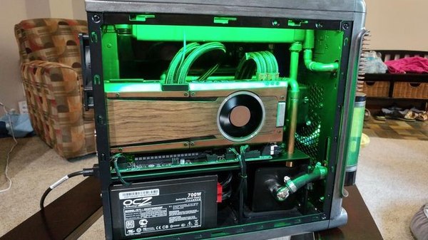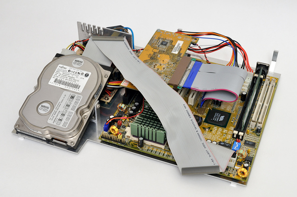 Но вернёмся к терминалу. Я решил, что будет довольно забавно использовать ретро-железо для воссоздания ретро-терминала. Конечно, можно было бы поставить туда какой-нибудь микрокомпьютер типа Raspberry Pi и не заниматься некромантией, но тут уже вступил в дело спортивный интерес. В общем, я нашёл все остальные комплектующие, получил тот самый AGP riser в невероятной упаковке, и собрал вот это: