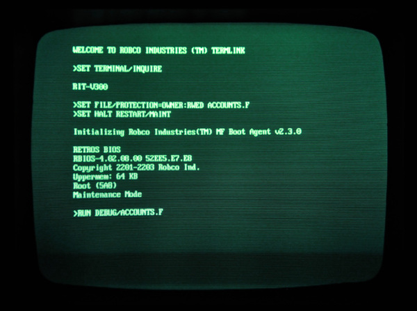 Но затем я нашёл практически то, что нужно, — RobCo UOS Emulator Beta 1.2. Сообщения на форуме fallout3.ru, где обсуждалась эта программа, были датированы 2011-м годом, но ссылки на скачивание оказались по-прежнему активны, так что я решил посмотреть, что же это за эмулятор. Оказалось, что он работает в текстовом консольном режиме и весьма точно воспроизводит процесс взлома терминала из игры — ввод «хакерских» команд, мини-игру с угадыванием пароля и переход в «главное меню». На этом старом видео можно посмотреть, как всё выглядит вживую на экране моего монитора: