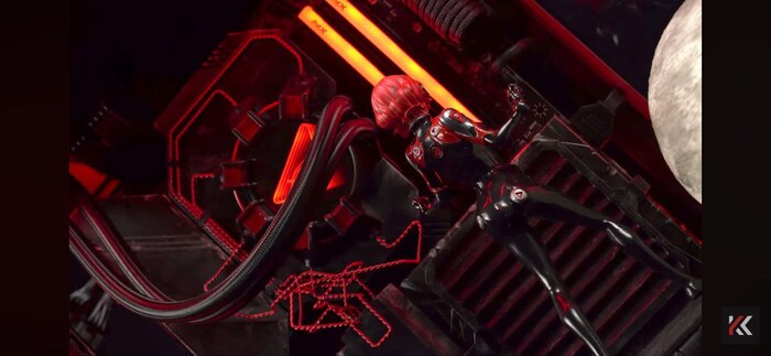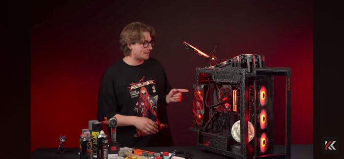 Внутри плата ATX, проц i7-3770k в сокете LGA1155 и среднего размера видеокарта RX6600XT с двумя вентиляторами. Если хочется установить полноразмерную с тремя - нужно увеличить ширину 300 на несколько сантиметров, высота и толщина сохраняются.