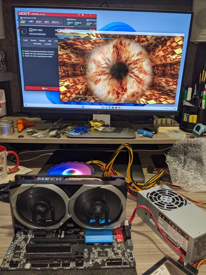 Оно работает! Выдерживает одновременно мохнатый бублик и occt в режиме stability. Т.е. и cpu и gpu по 100%, и не сказать чтобы блок как-то напрягался, вентилятор не орет, блок не греется. Что забавно, у блока в описании не было штекера питания видеокарты, и я даже заранее купил переходник, чтобы запитаться от молексов, но по факту у блока этот штекер тоже есть, просто праздник какой-то )