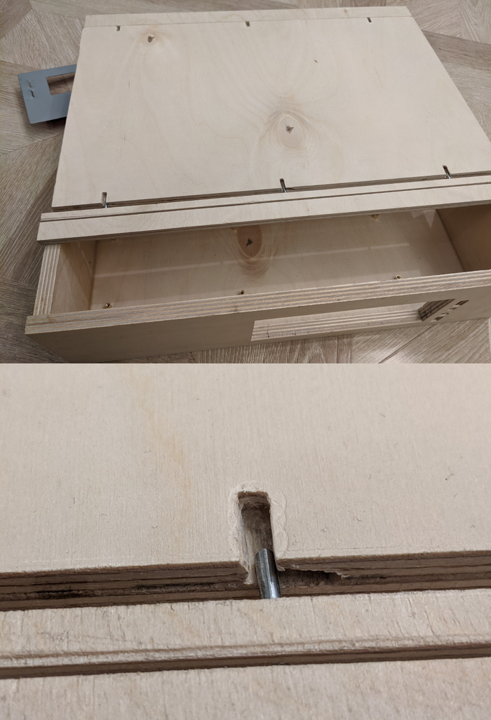То есть крышка вставляется в корпус плашмя так, чтобы штифты попали в пазы, а потом крышка сдвигается вниз и штифты проходят по пазам до конца и крышка встает на свое место. Точность нужна только при разметке отверстий под штифты, а пазы уже потом дремелем можно на глаз пилить.