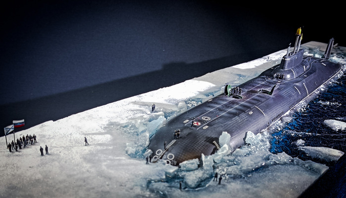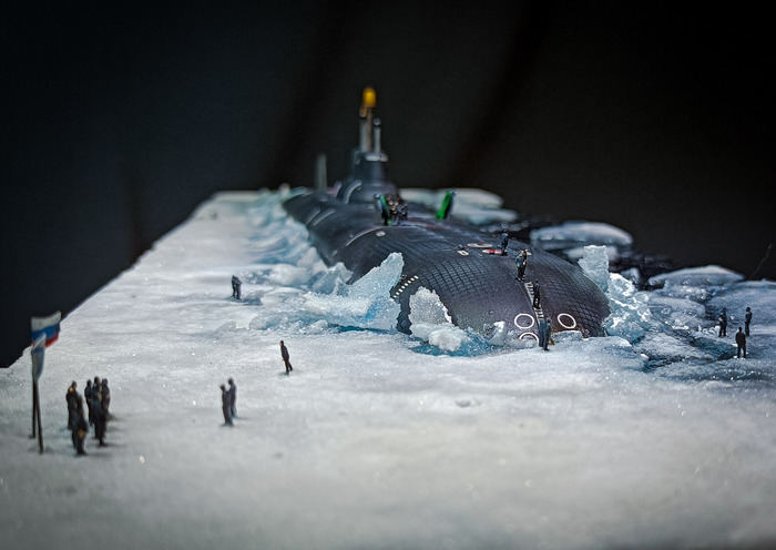 Эта работа сделана в память о хорошем человеке подводнике Александре Сергеевиче Богачёве — советский и российский офицер-подводник. Капитан 1 ранга (1993). Командир ТК-20 ,,Северсталь,, мировой рекордсмен по числу запусков баллистических ракет под его командованием — 58. Под его командованием 25 августа 1995 года с борта АПЛ был произведен учебный пуск баллистической ракеты с разделяющимися головными частями из района Северного полюса по полигону в Архангельской области. Именно это событие и показано на диораме.
