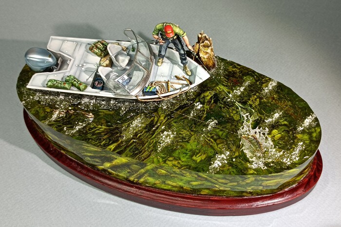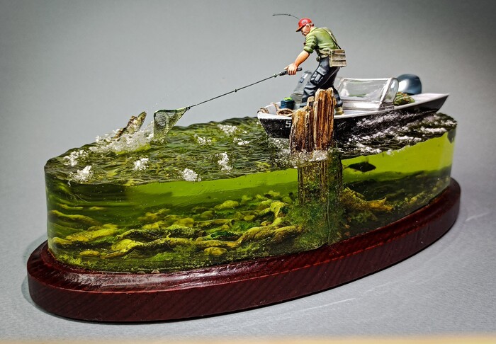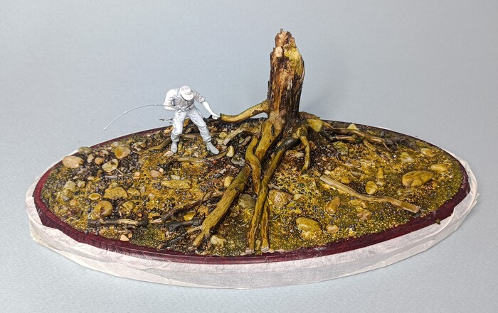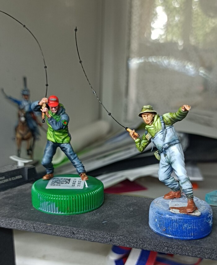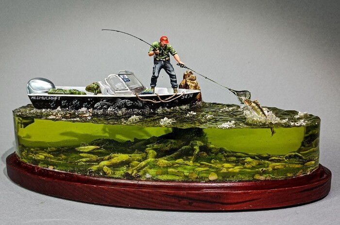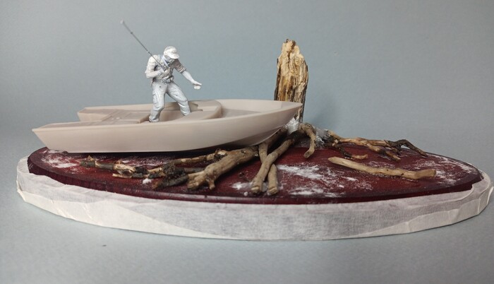 Фигурку рыбака слепил сам , взяв за основу запчасти от мужиков в 35 масштабе.