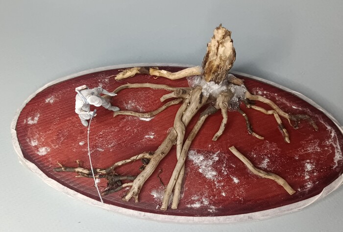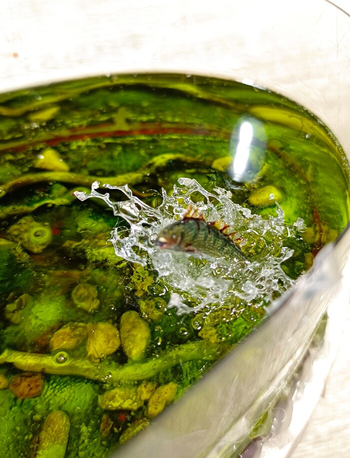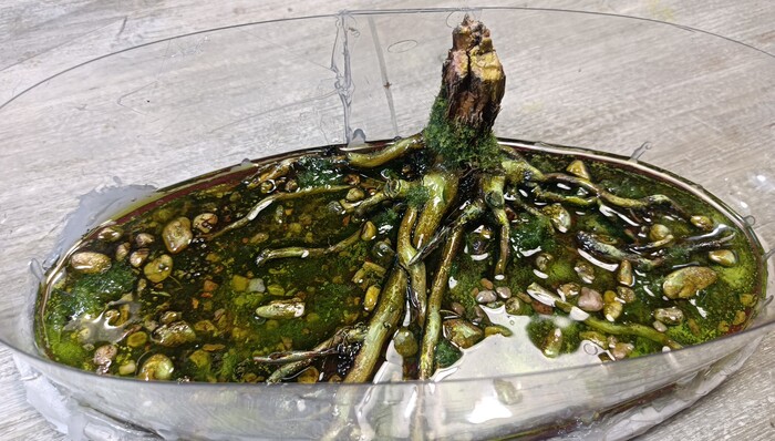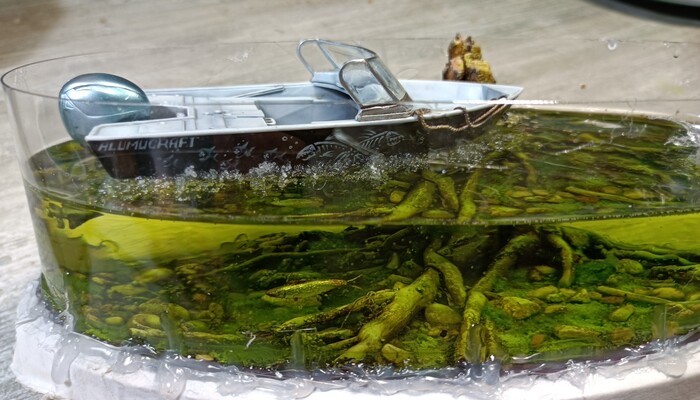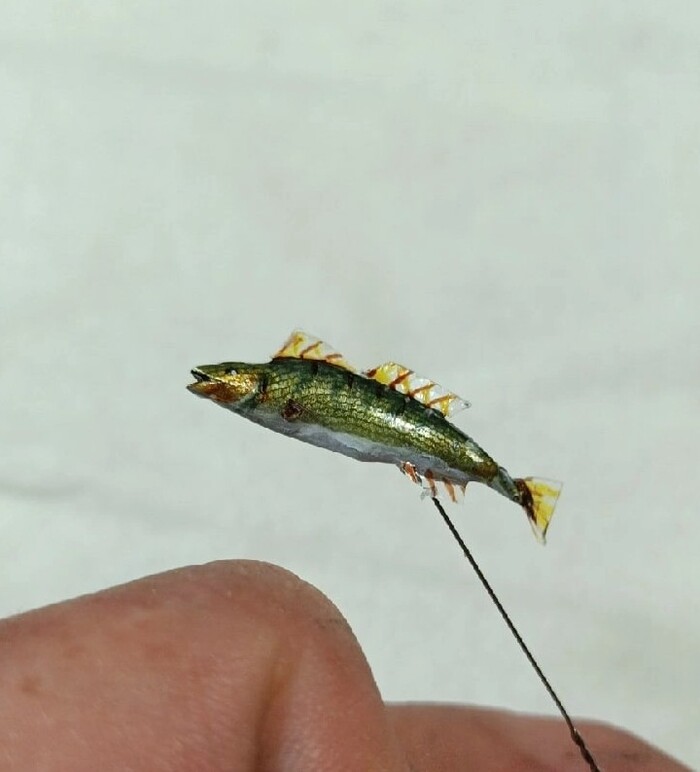 В компазицию добавил рыб , которых вылипил сам и покрасил .
