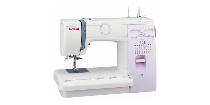 А теперь перейдем к разделу лучших швейных машин в категории цена – качество. Они уже наделены большим количеством операций, высокой скоростью шитья и подойдут для уверенных пользователей. И открывает раздел еще одна модель популярного производителя – Janome 415. Покупателям нравится ее надежность, универсальность и возможность работать с любыми материалами. Здесь предусмотрена увеличенная рабочая поверхность, съемная рукавная платформа, линейка на корпусе, встроенный нитеобрезатель и автоматический нитевдеватель для простой заправки нити. Нижний транспортер можно отключать, если того требует определенная швейная операция.