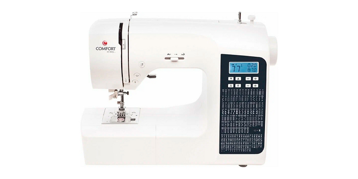 Продолжает рейтинг модель с одной из лучших цен в категории – Comfort 16. Она выполнена в оригинальном черно-белом дизайне, снабжена широкой ручкой для удобства переноса, съемной рукавной платформой и вертикальным качающимся челноком. Машина оптимально подойдет для работы с легкими и средними тканями, так как обладает не самой высокой мощностью и скоростью шитья всего в 450 ст/мин.