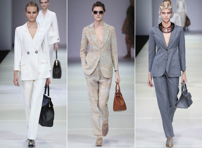 В конце 1970-х Армани предложил женщинам носить пиджаки мужского кроя, но адаптированные под женскую фигуру. Его женские костюмы сочетали мужскую строгость с женственностью, не лишая носительниц силы и авторитета. Это было особенно важно в эпоху, когда женщины активно завоевывали позиции в бизнесе.