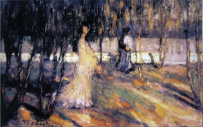 Тогда появились его первые работы - постимпрессионистские пейзажи, что было редким явлением в его творчестве.