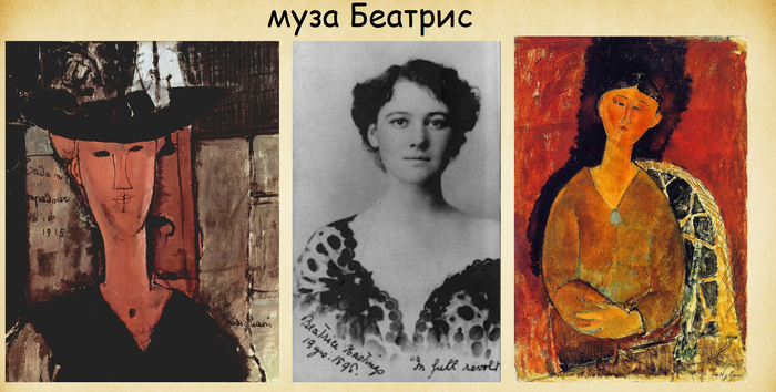 Она ворвалась в его жизнь как ураган: красавица, поэтесса, журналист и настоящая английская леди. Имела взрывной темперамент, эксцентричный характер и веселый нрав. Беатрис и Амедео сразу стали неразлучны, молодой человек даже переехал к ней жить. В период расцвета их любви (1914-1916) Беатрис являлась главным источником вдохновения для художника, в результате чего появилось много значительных произведений (из них четырнадцать портретов возлюбленной). Впервые Модильяни понял, что чувственность в живописи очень важна, не меньше чем краски и кисти, без нее портреты безжизненны и вялы.
