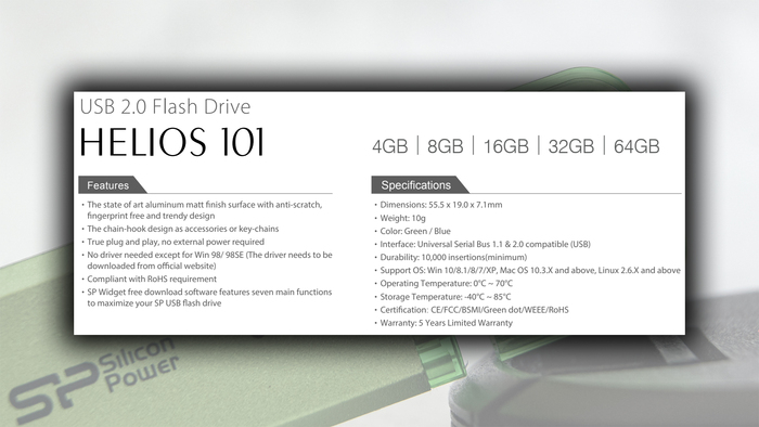 Несмотря на повсеместное внедрение высокоскоростных интерфейсов, сегмент классических USB 2.0 накопителей все еще жив. Основные аргументы в их пользу — доступная цена и достаточность характеристик для работы с документами или воспроизведения музыки. Виновник текущего обзора флеш-накопитель Silicon Power Helios 101 объемом 64 ГБ. Эта модель присутствует на рынке уже давно и пытается привлечь покупателя не рекордными скоростями, а ставкой на доступную стоимость, приятный дизайн и металлический корпус. Знакомимся с сабжем и пытаемся определить сферу его применения!