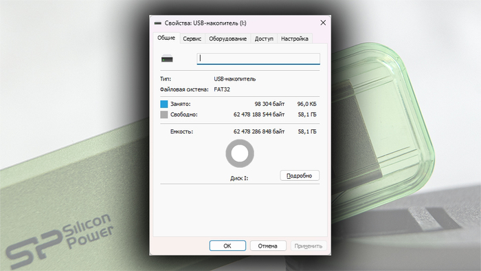 Пользователю доступен объем 58,1 ГБ.