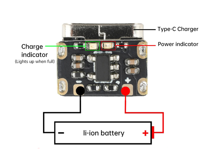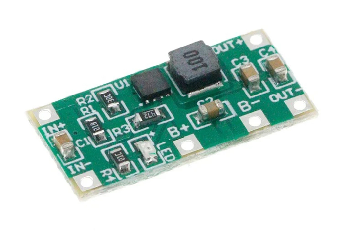 Построен на базе чипа LP-4054, который обеспечивает стабильную зарядку до 4,2 В. Визуальный контроль за процессом осуществляется через встроенный индикатор. Плата устойчива к замыканиям и может безопасно находиться под питанием даже при ошибках подключения.