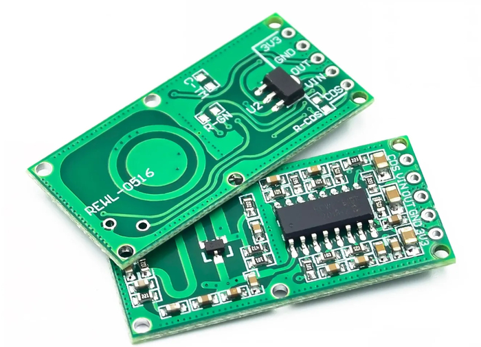 В отличие от ИК-сенсоров, этот микроволновый модуль использует эффект Доплера для обнаружения движущихся объектов. Он работает на частоте 3,18 ГГц и способен фиксировать малейшие перемещения даже сквозь стены и стекло.