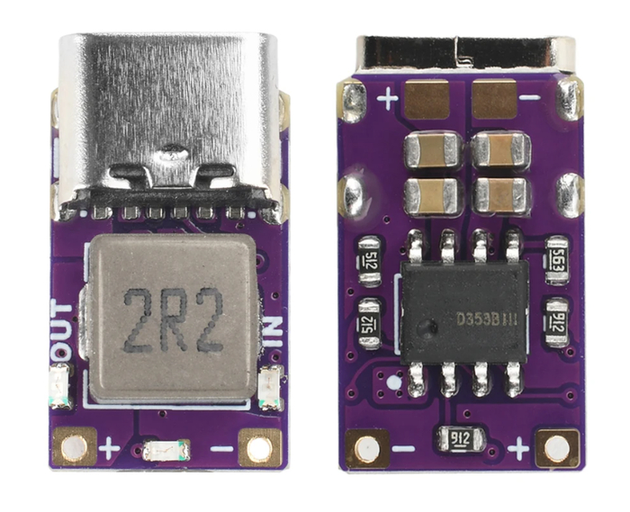Этот модуль отличается от предыдущего тем, что умеет не только заряжать аккумулятор, но и обеспечивать питание внешних устройств. Он поддерживает двухстороннюю работу через Type-C и способен работать как повышающий преобразователь.