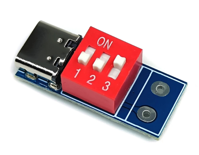 Современные зарядные устройства способны выдавать разное напряжение, но по умолчанию ограничиваются 5 В. Чтобы активировать более высокие уровни, нужен триггер, подобный этому модулю. Он позволяет выбрать нужное напряжение с помощью DIP-переключателей: от 9 до 20 В.