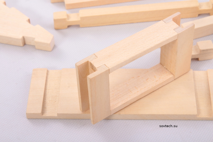 Детали из дерева, пазы получены фрезеровкой. Не помню, чтоб от него были занозы.