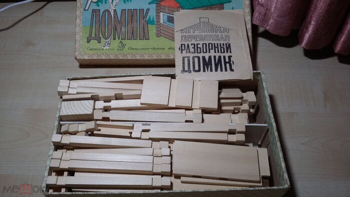 Это конструктор из моего детства. В коробке детали: (отдельный процесс потом детали в коробку укладывать после игры)