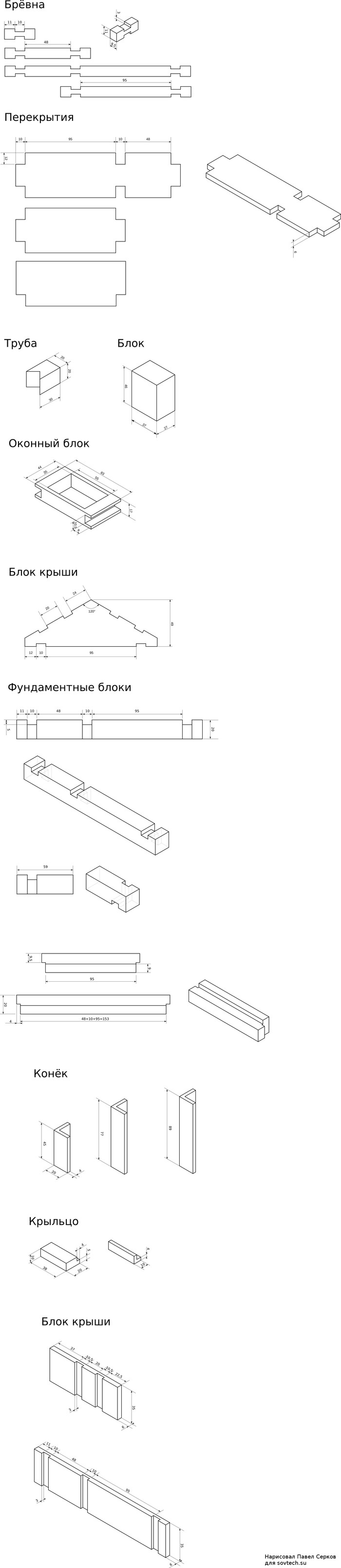Но собственно пост для чего. Во-первых я отсканировал инструкцию. Во-вторых я сделал чертежик деталей и собрал на одну картинку. Хотя в комментариях под оригинальным постом эту работу уже проделали.
