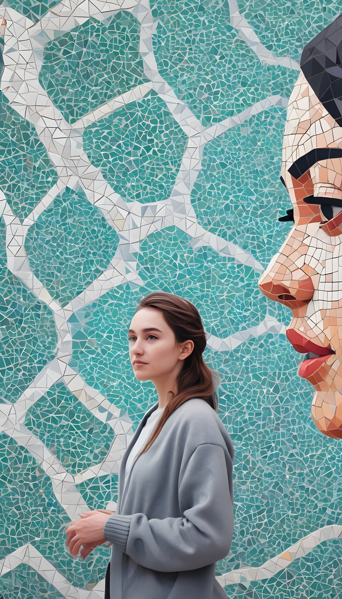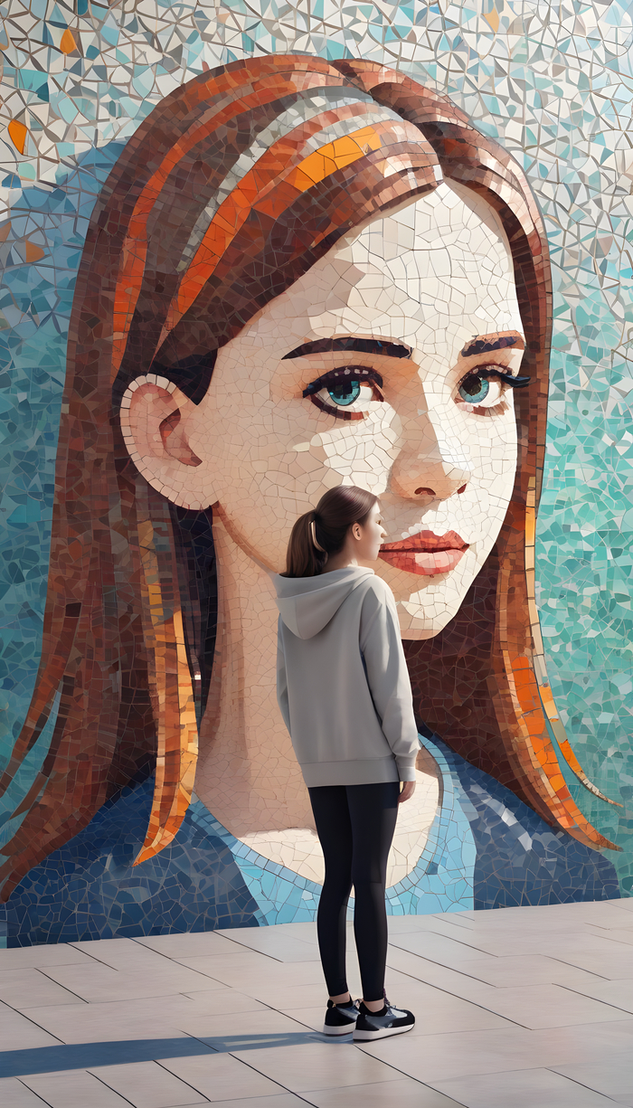 Девушки на фоне мозаики