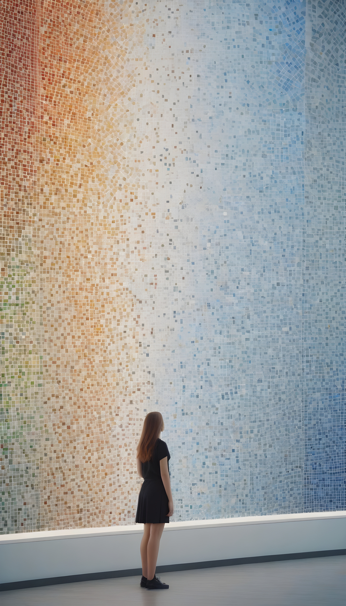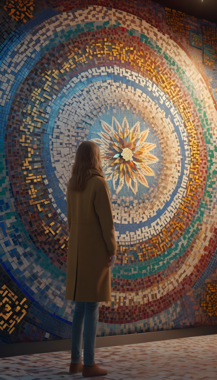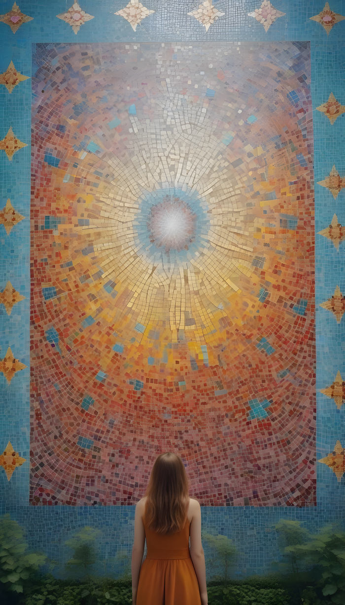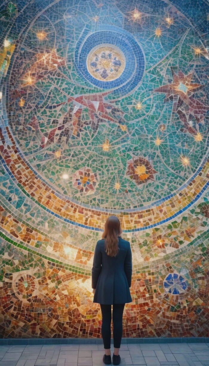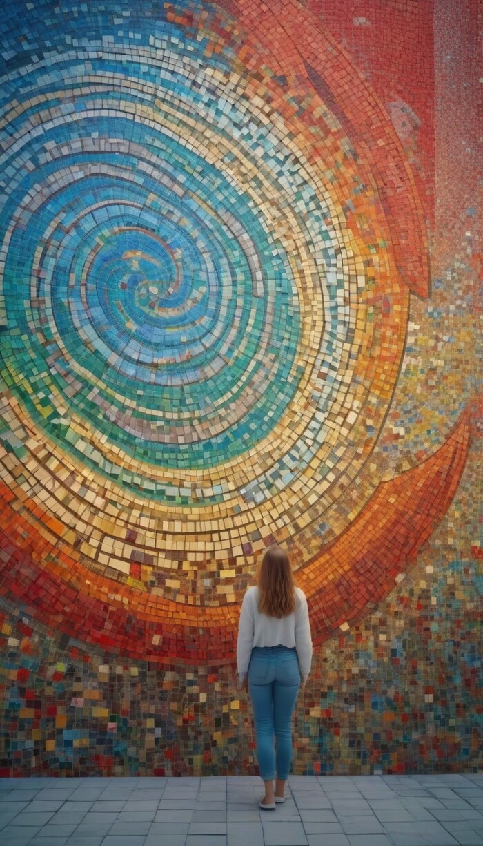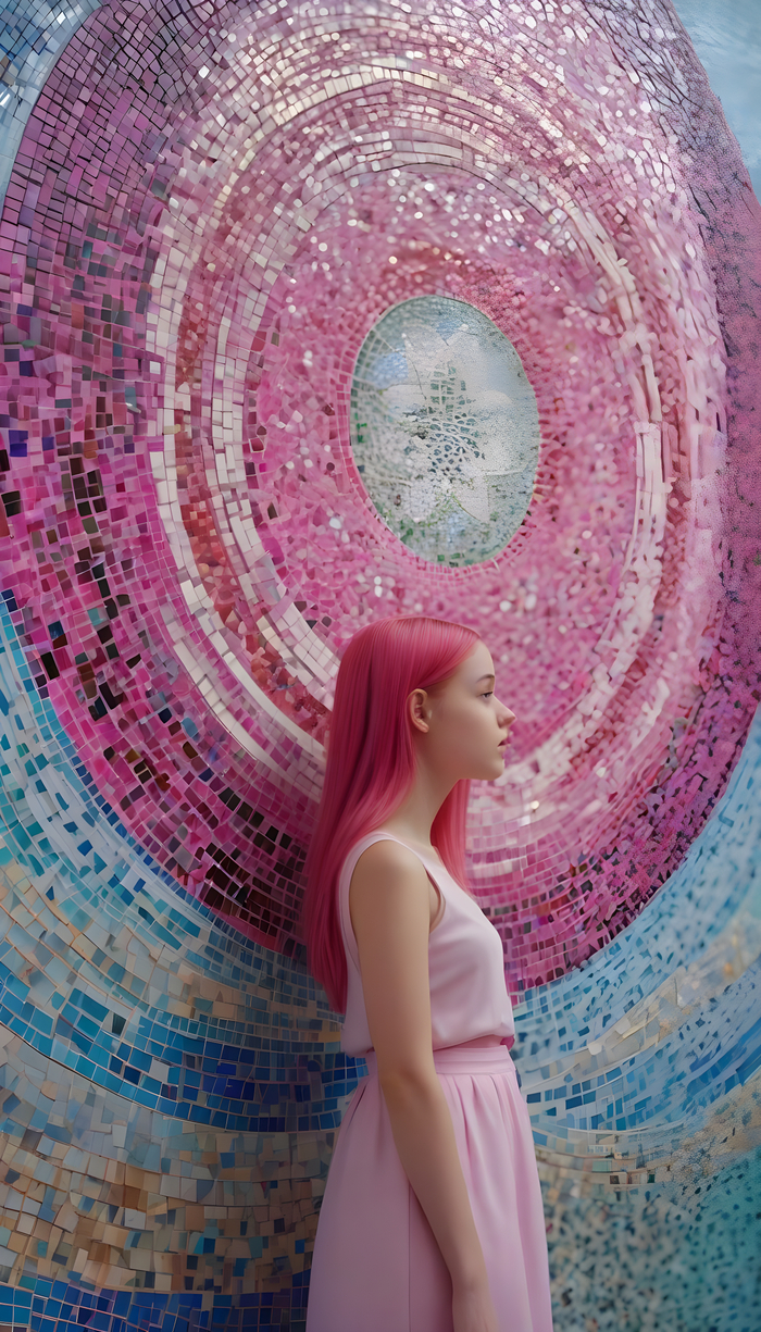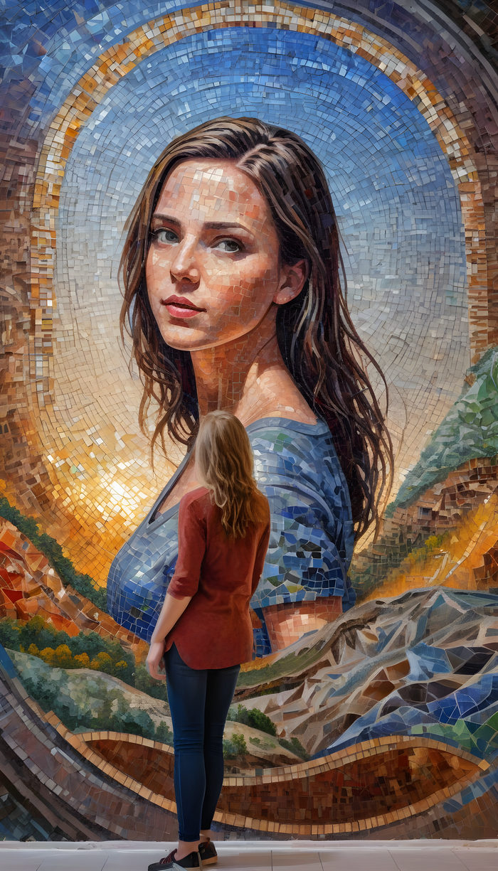 Подборка фото с девушками на фоне мозаики. Стены с мозаичным панно из смальты, стеклянной или керамической плитки.