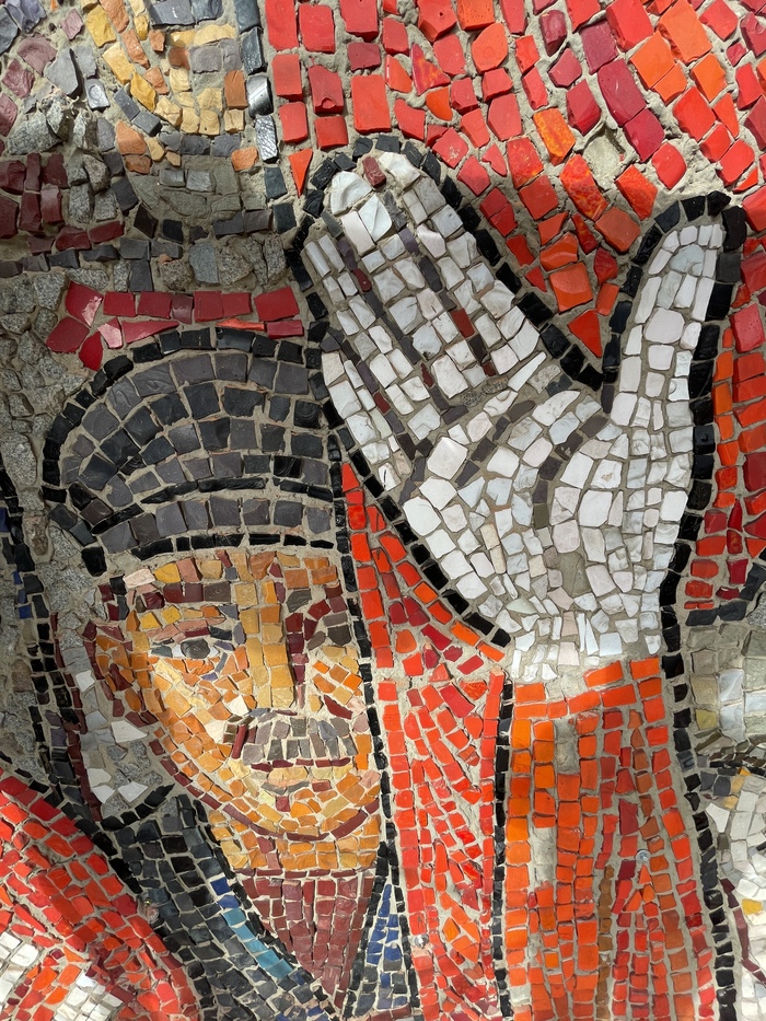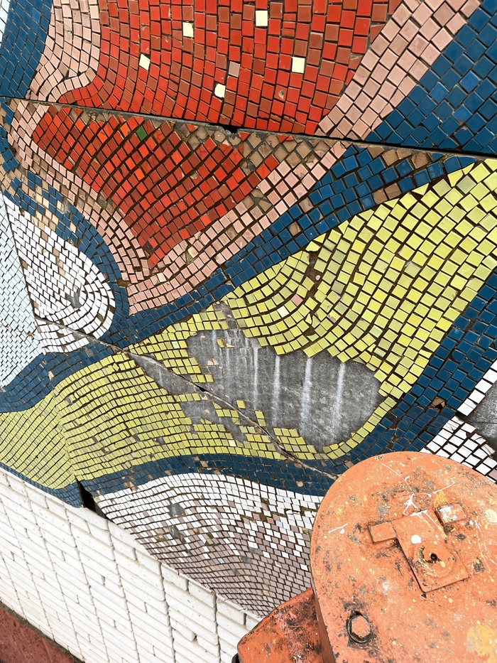 Репортаж о реставрации мозаики «Выше, быстрее, сильнее.»