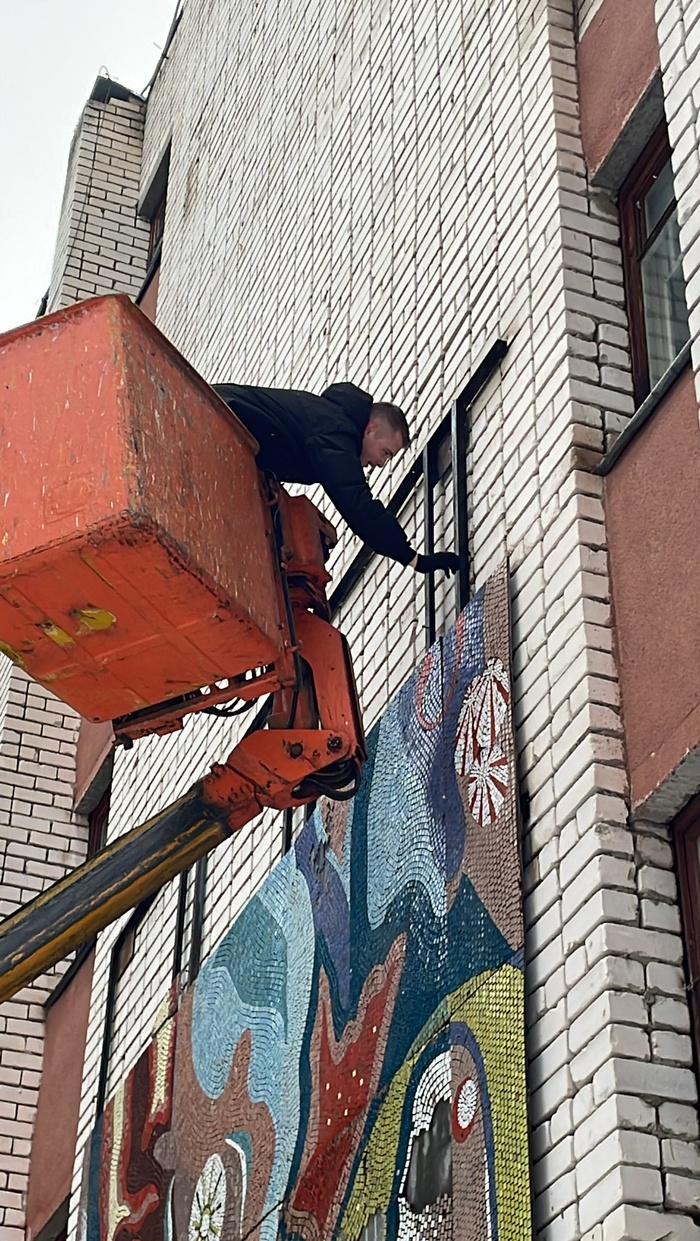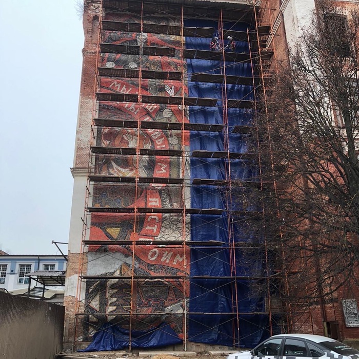 Как мы производили консервацию мозаики «Мы наш новый мир построим!» на фасаде прядильно-ткацкой фабрики г. Наро-Фоминск