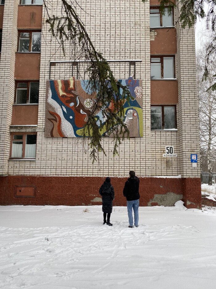 В декабре 2023 года они связались с нами что бы мы могли осмотреть место и подсказать как в этой ситуации поступить. Через несколько дней нам удалось приехать в Новочебоксарск и осмотреть уцелевшую часть панно на месте.