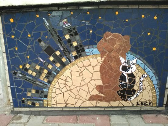 Каждый год тут проходит фестиваль мозаики и появляются всё новые картины, которые они рисуют везде по городу и больше всего на бортиках вдоль пляжа.