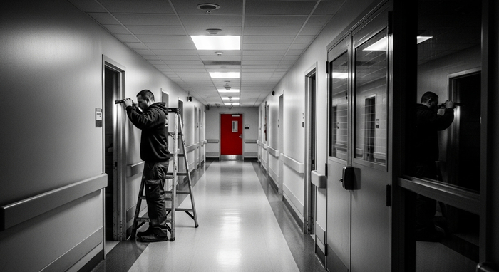 Ночью обычно тихо. Пара медсестёр, один врач в приёмном, сонный охранник. Здание усаживается в постоянный фоновый шум: вентиляция, ледогенераторы, тревоги телеметрии, колёса по линолеуму. Всё это сливается в один низкий гул. Ты его не замечаешь, пока он не исчезает.
