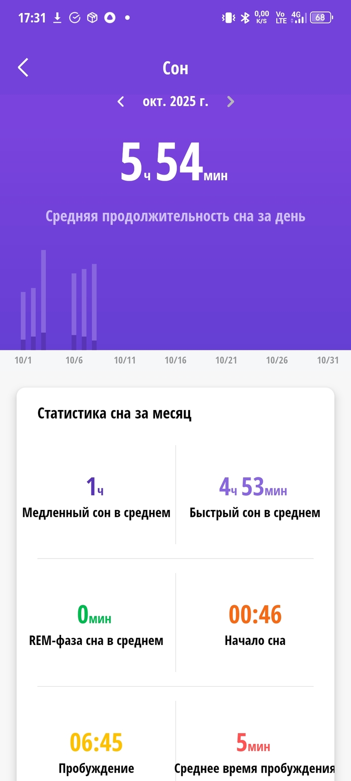 К примеру средняя продолжительность сна в октябре составила чуть менее 6 часов, явный недобор: