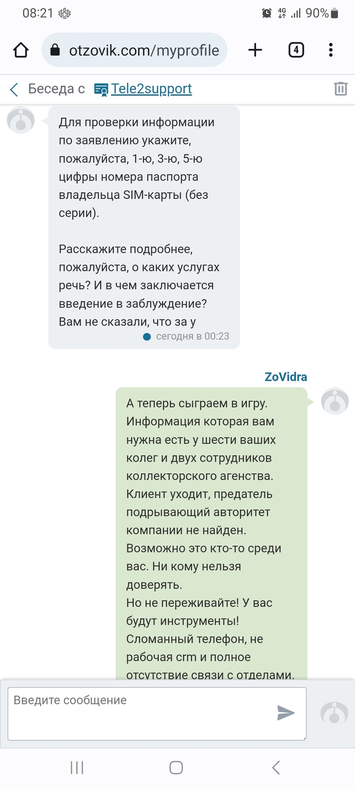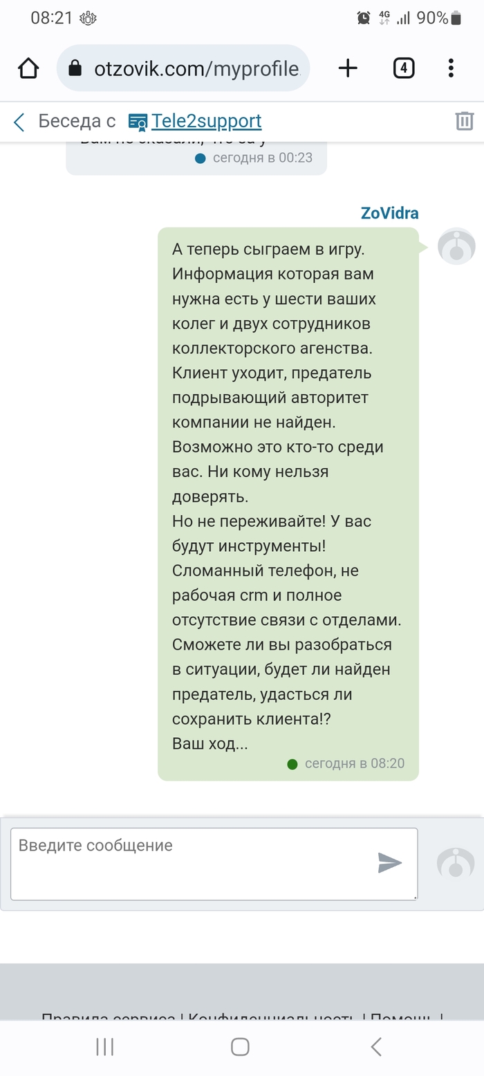 1330 VidraD 2 года назад Игра началась Показать полностью 3 [моё] Сотовая связь Негатив Мой ход Теле2 Бесит Длиннопост Переписка Скриншот 30 4 1 1 Ещё 0