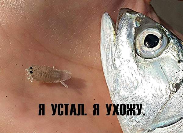 И выпустили обратно в море. Хотя, честно говоря, найти нового хозяина взрослому изоподу шансов примерно никаких. Скорее всего их просто сожрут другие ракообразные типа крабов. Но зато какая судьба. Родился мокрицей, а ушел звездой!