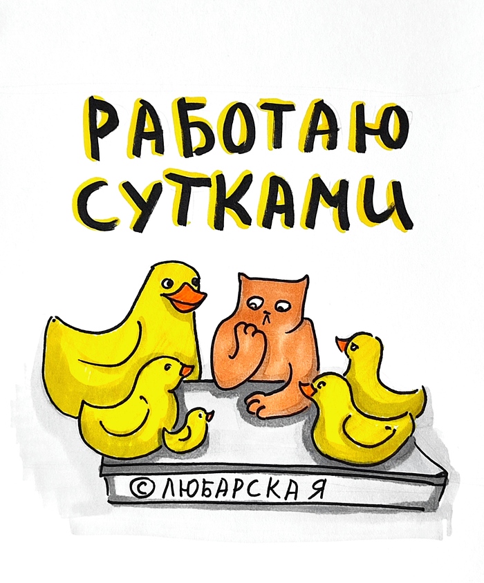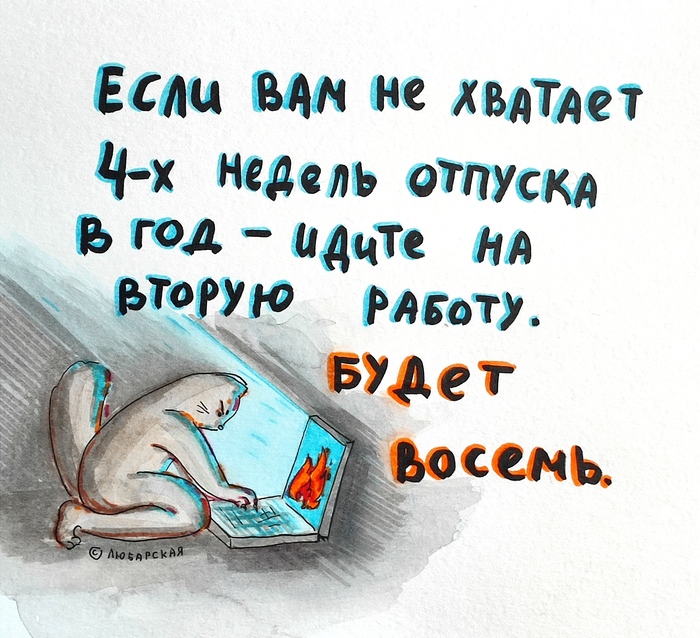 Или тот момент, когда в воскресенье вечером понимаешь, что завтра понедельник и снова на работу. Сидишь в итоге вечером и рисуешь кота, который: «Да, я тоже не готов. Вообще. Никак».
