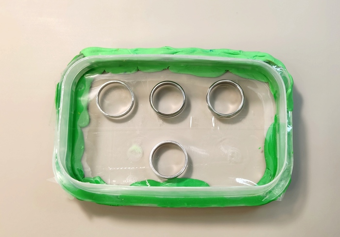 После нескольких часов томительного ожидания - отлепляю весь пластилин, убираю скотч иииии тааа-дааам! Момент истины, как же достанутся кольца?