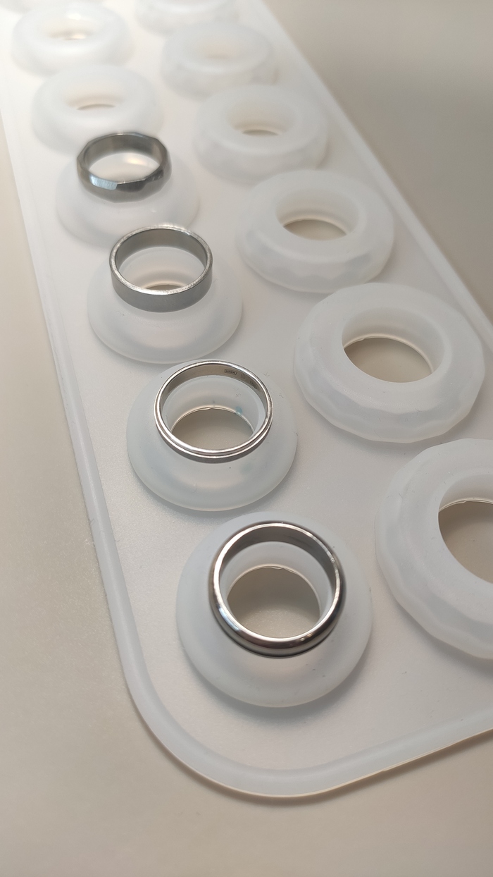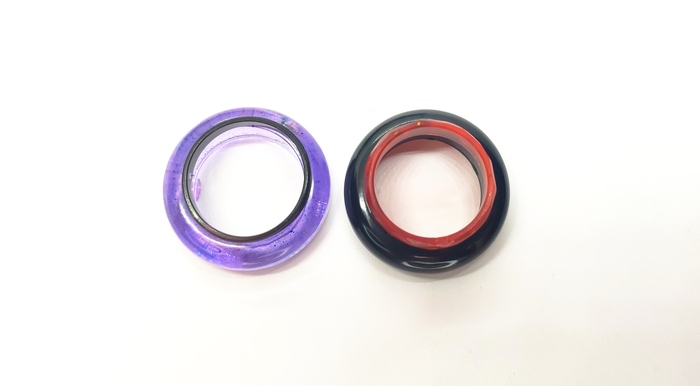 Тут я сравниваю кольца из покупного молда и свои. Разница в объемах сильна: