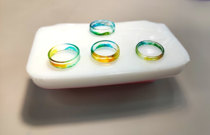 Фух, я справилась. Процесс был очень интересным, мне крайне понравилось копипастить свои любимые кольца в эпоксидке, да ещё и разными цветами 😊