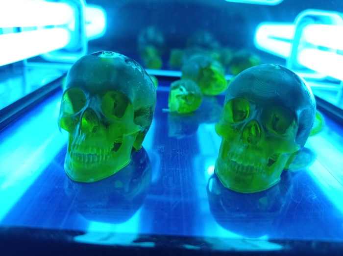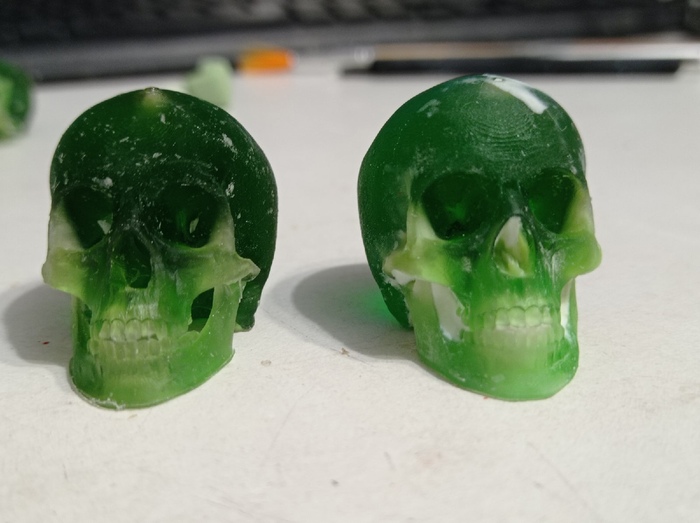 Когда все модельки кубов готовы, можно бежать в местную фирму, занимающуюся 3D-печатью, и радостно просить их напечатать все это дело. Единственным критерием, который у меня был к такой фирме, когда я обращалась в первый раз – это возможность напечатать кубы из фотополимера. Это немного дороже, зато на таких кубах сразу видно степень шлифовки-полировки, и они не ингибируют с силиконами на платиновой основе. Я знаю, что есть мастера, которые используют в качестве мастер-модели кубики, напечатанные из обычного пластика для 3D-принтера, потом отливают формы из силикона на оловянной основе (потому что с этим силиконом пластик вроде бы не ингибирует, а с силиконом на платиновой основе может), заливают туда эпоксидку, достают, и уже на основе этих кубов из эпоксидной смолы делают молды из силикона на платиновой основе. Но это все звучит жутко, долго, и вообще не мой случай.