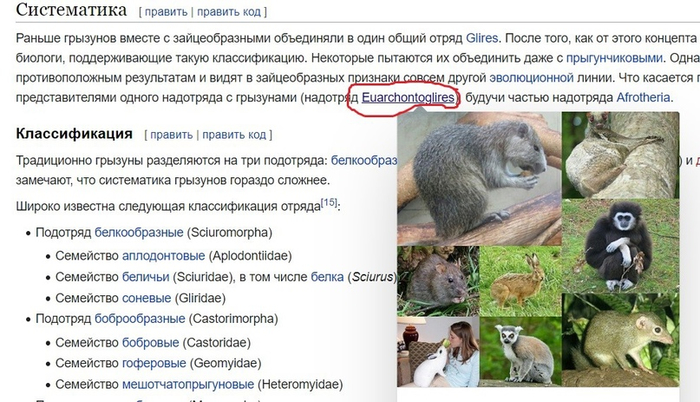 Для этого проводим аналогичные манипуляции с семейством хомяковые и в конечном итоге попадаем в отряд грызуны. Переходим в раздел систематики и ищем надотряд (рис.6).