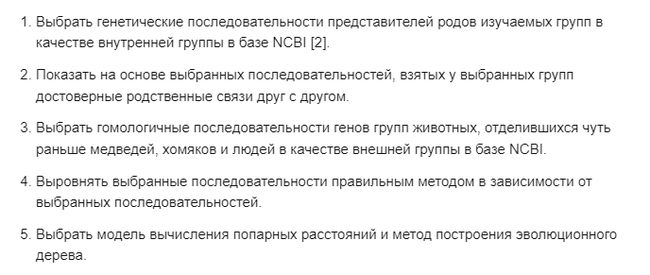 Это нужно сделать на случай, если нужные генетические последовательности медведей из разных родов в генбанке нам найти не удастся (рис.2).
