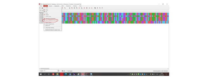 Теперь нам надо начинать определяться с методами. Первым важным методом будет выравнивание генетических последовательностей. Выравнивание является важным биоинформатическим методом, основанным на размещении двух или более генетических последовательностей позволяющим увидеть сходные участки в этих последовательностях. Их сходство может отображать структурные и эволюционные связи, которые без выравнивания не построить [5]. Выравнивание мы не будем производить в MEGA 10, так как для рибосомальных последовательностей лучше воспользоваться маффтом [6]. Перед этим мы объединим все последовательности в меге в одну и экспортируем в любую папку на рабочем столе в формате «fasta» (рис.10).