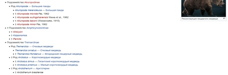 Переходим в раздел научной классификации и смотрим список родов в семействе медведей, предварительно выписав название этого семейства на латыни (Ursidae). Нам понадобятся названия всех родов на латыни, которые есть в семействе. Их лучше также выписать (рис.1).
