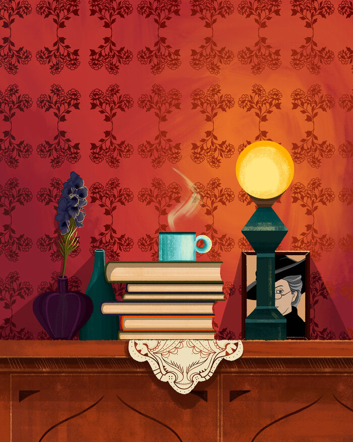На футболке корги Стивена Кинга. Собаку зовут Молли, но сам Кинг прозвал её "Воплощение Зла".