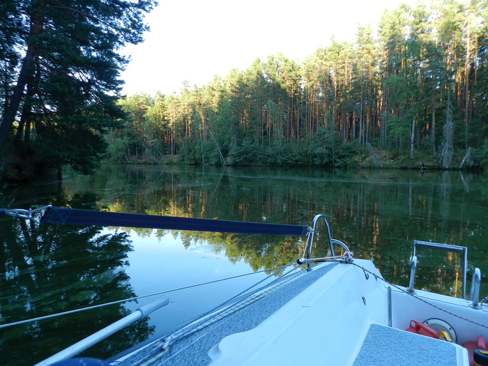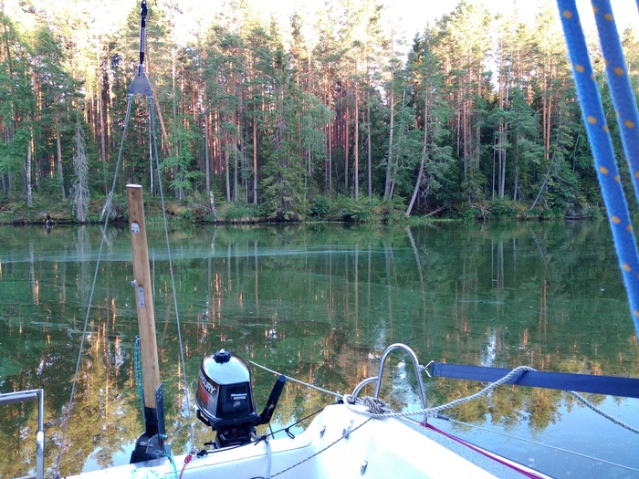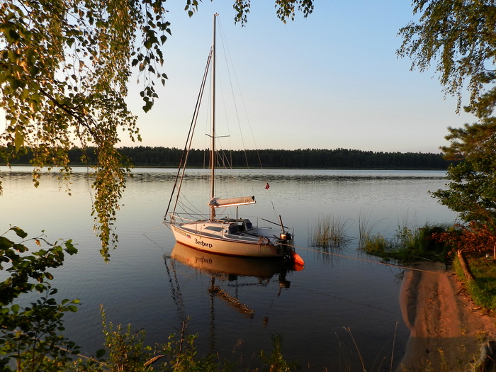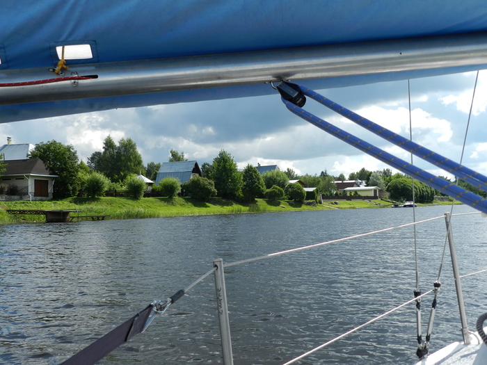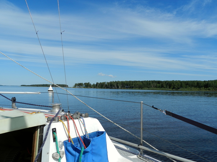 Отлично выспавшись на свежем воздухе и с аппетитом позавтракав, мы с Алексеем продолжили наше маленькое путешествие. Дул ровный попутный ветер, и мы наслаждались тишиной, шелестом воды по борту и пейзажами.